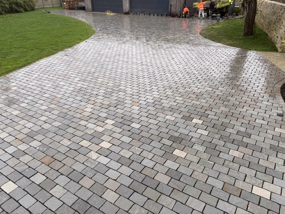 Spécialiste du pavage décoratif granit, béton et pierre naturelle, nous intervenons sur : Voiries et rues pavées, Places publiques, Allées et cours, Zones piétonnes, Aménagements résidentiels...