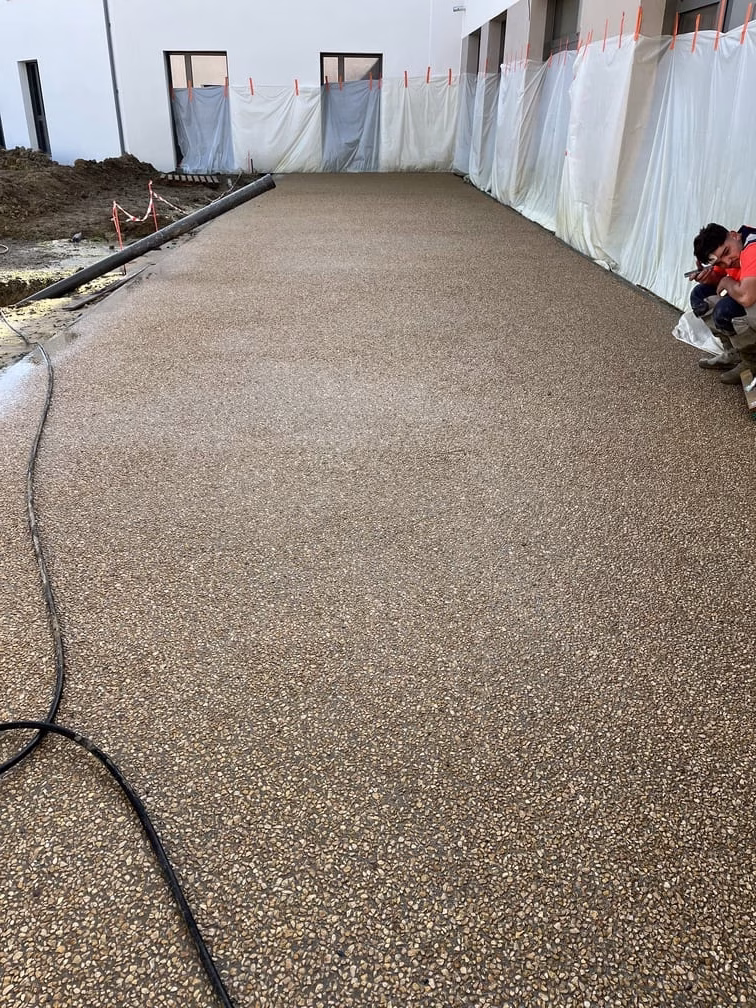 Béton balayé, désactivé et érodé pour aménagements urbains et résidentiels